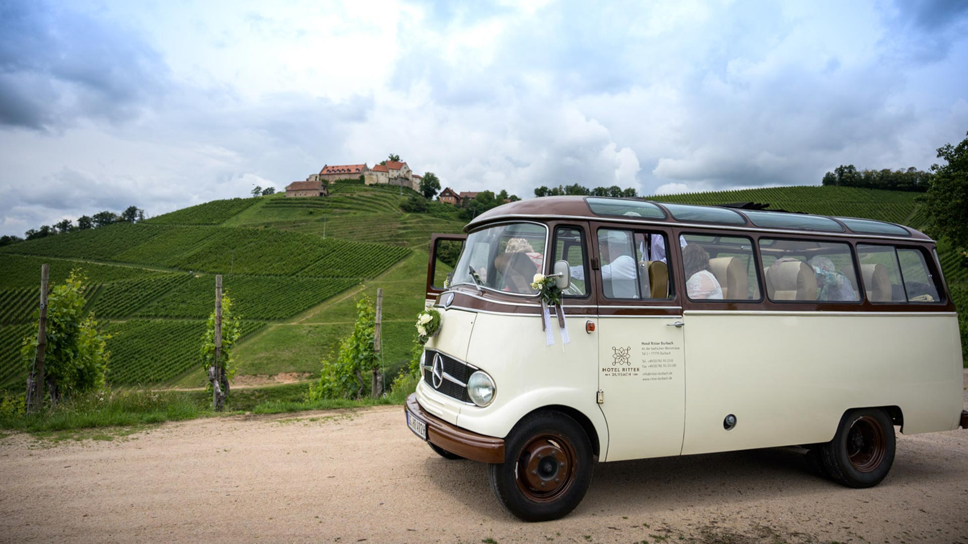 Nach dem Lunch steigen Sie in einen Oldtimer, der Sie durch die badischen Reben chauffiert. Dabei besuchen Sie einen der vielen landwirtschaftlichen Betriebe, die wie zum Beispiel Giso Eben von Racknitz (oben) für die Regionalmarke „Unsere Heimat – echt & gut“ Gemüse und Obst anbauen. Es folgt ein Blick hinter die Kulissen des Ortenauer Weinkellers und auch eine kleine Verkostung darf natürlich nicht fehlen.